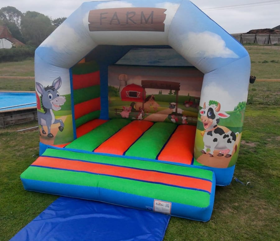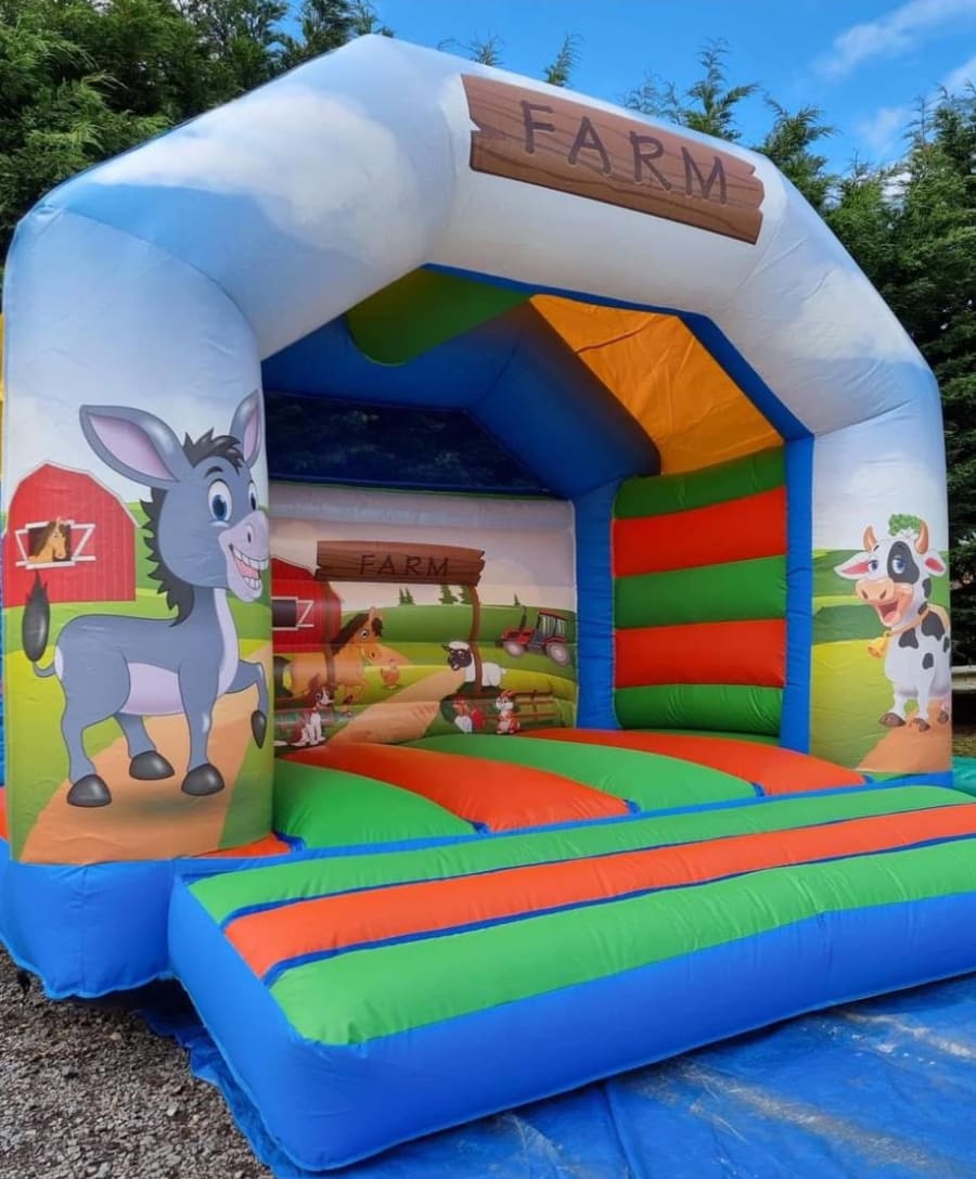 🐮 Farmyard Bouncy Castle (13x13ft) 🐷 Say hello to the happiest farm in town! Our Farmyard Bouncy Castle is packed with colour, charm, and cheerful animals that little ones will absolutely love. With friendly cows, donkeys, and farm scenes all around, it's the perfect choice for outdoor parties, toddler birthdays, and village fêtes. The spacious 13x13ft design gives kids plenty of room to bounce, laugh, and play — rain or shine, thanks to the built-in roof cover!