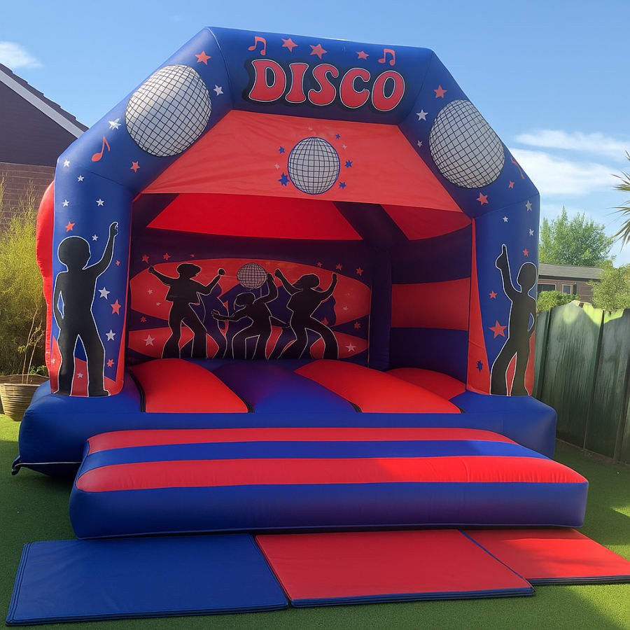 π Disco Bouncy Castle (15x16ft) – For Kids & Adults! πΊπ Turn up the fun with our vibrant Disco Bouncy Castle! With its bold colours, funky disco dancers, and sparkling mirror ball designs, this 15x16ft inflatable is a party magnet for all ages. Perfect for birthdays, garden parties, school events, or even grown-up celebrations – yes, adults can join in too!