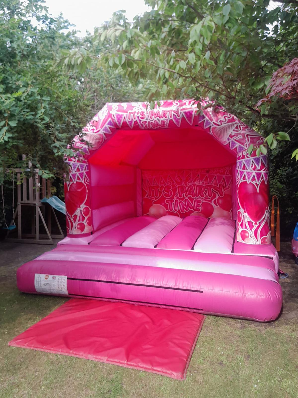 For example: a 12ft x 12ft bouncy castle will need around 13ft x 15ft of clear space